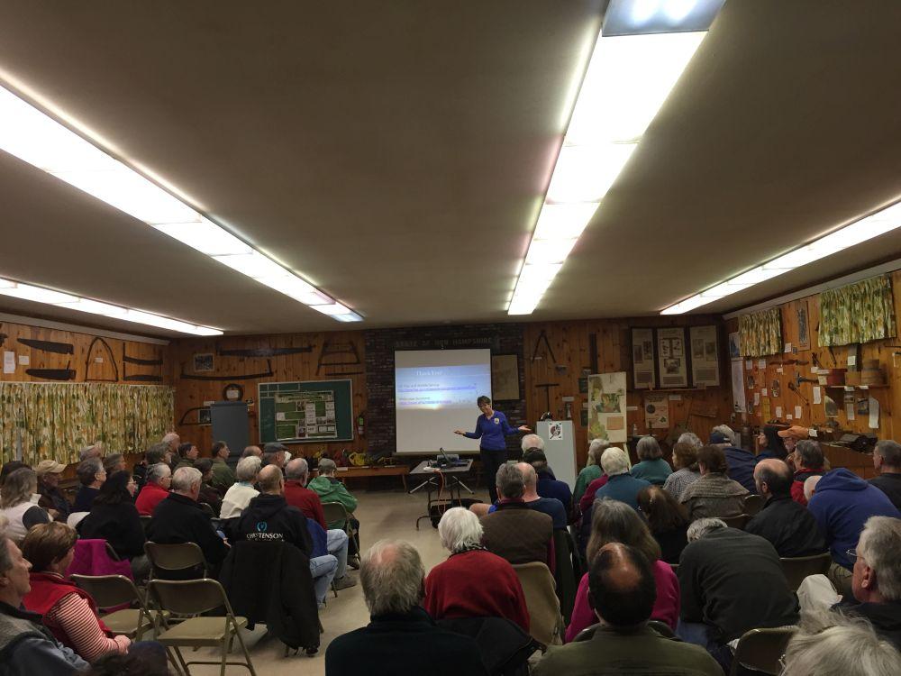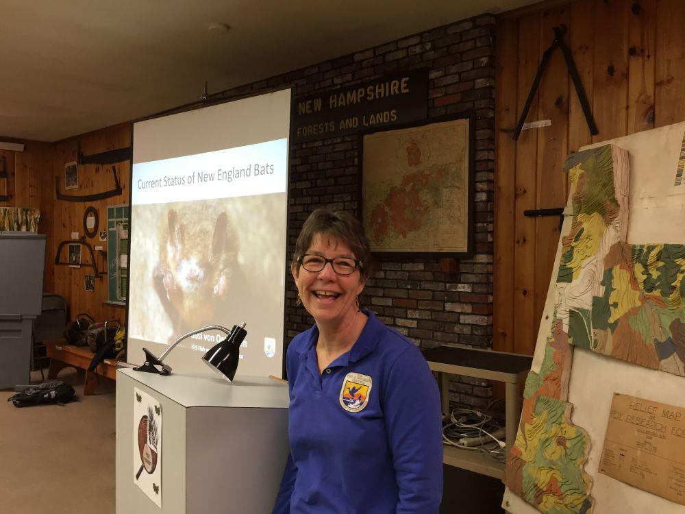 On March 22, USFWS Endangered Species Biologist Susi VonOettingen spoke to a packed audience of 92 attendees about the status of N.H. bat species and provided an update on the status of White Nose Syndrome in winter hibernacula where most N.H. cave bats spend the winter.