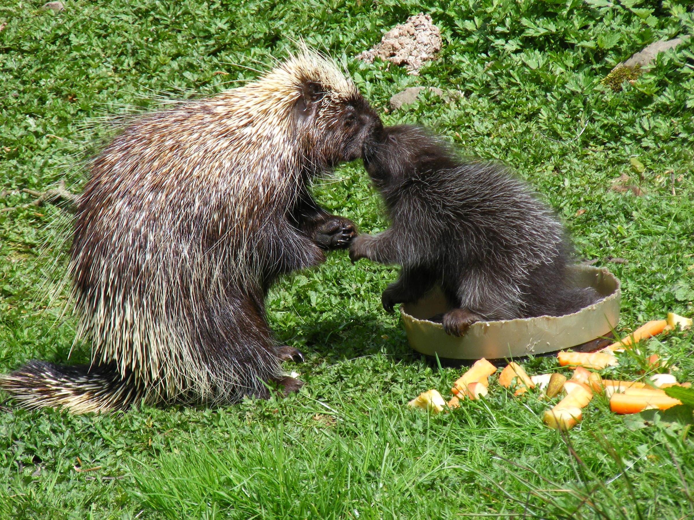 Those quills really are something else. Porcupines actually have rather soft fur that is mixed with up to 30,000 quills that will lay flat on their back until they feel threatened. Then, just like when we get goose-bumps, the quills stand up. They don’t shoot off the body but they detach very easily when touched, and they have little barbs at the end that make them really hard to get out.
