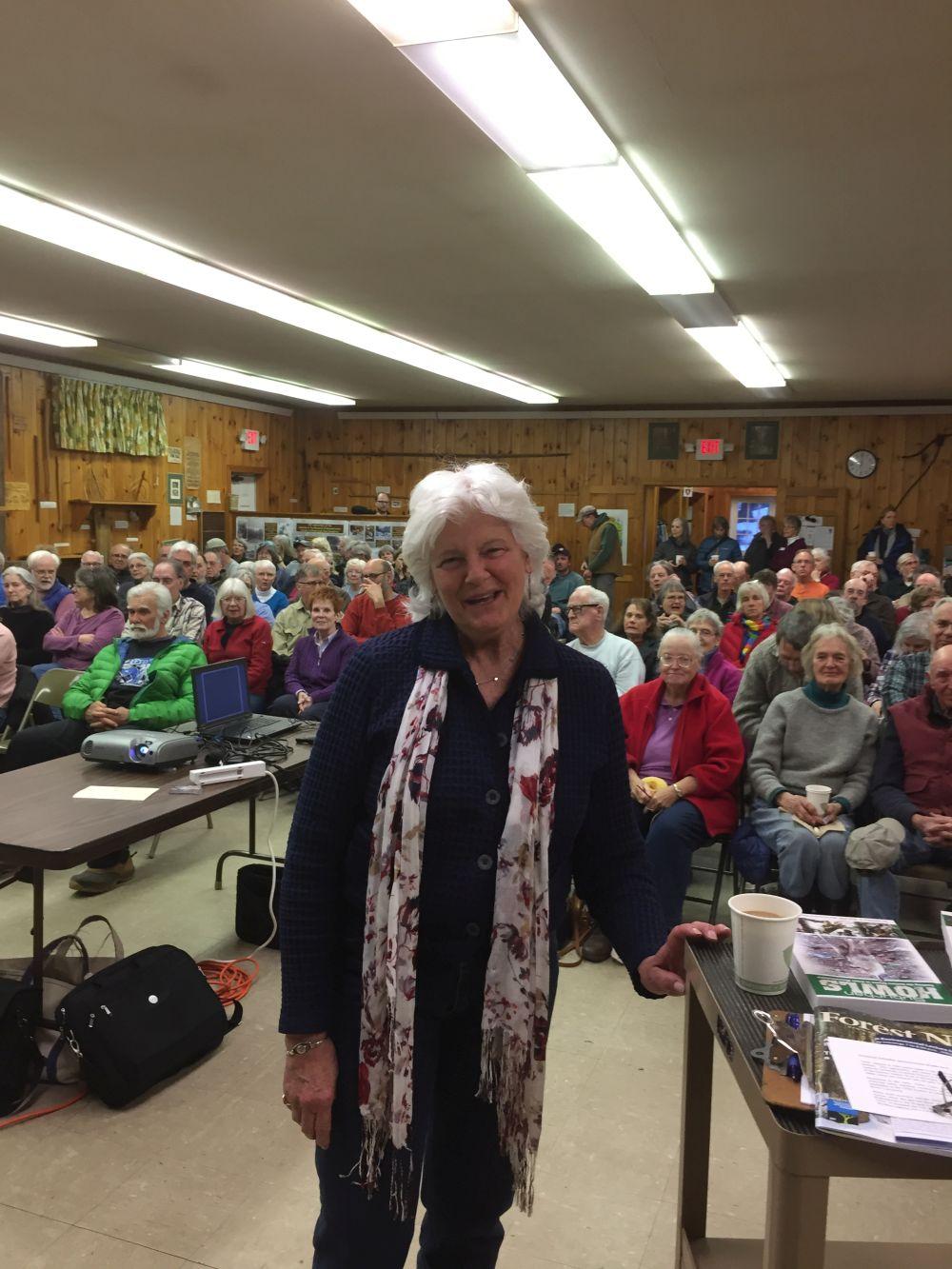 A capacity, standing-room only crowd attended the March 27 talk by NH coyote expert Christine Schadler.