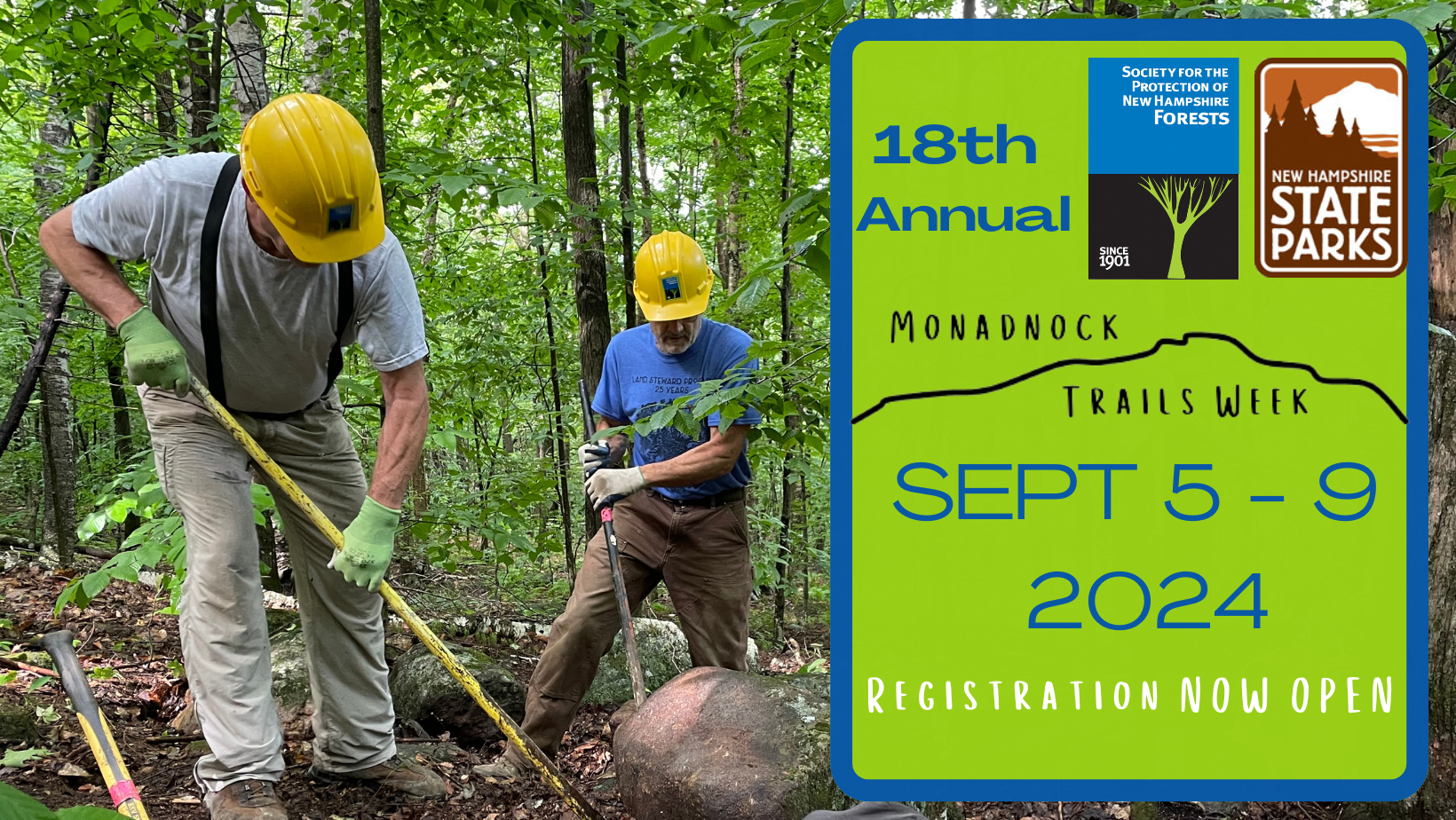 The Annual Monadnock Trails Week gives outdoor enthusiasts an opportunity to give back to one of New Hampshire’s most beloved landscapes, Mt. Monadnock, and share in camaraderie and community through stewardship. To help keep Mt. Monadnock safe and welcoming for hikers, the Society for the Protection of New Hampshire Forests and New Hampshire State Parks will be hosting the 18th Annual Monadnock Trails Week, September 5-9, 2024. Trail improvement projects are planned on several trails on the mountain in this weeklong event.