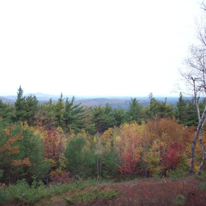 The marked trail at the Buxton-Simons Forest begins from the property gate and sign off Flanders Memorial Drive and leads into a beautiful hemlock forest along a marsh. Along the trail, observant visitors will notice that the area was sustainably harvested in 2018. Evidence of forest thinning and a series of patch cuts are visible from the trail. These valuable openings will allow light to reach the forest floor and encourage new growth. The trail’s elevation increases steadily, leading to the 1,201-foot summit of Mount Wallingford, the highest point in the town of Weare. On a clear day, visitors can see the summit of Mount Washington. Look for wild blueberries in season.