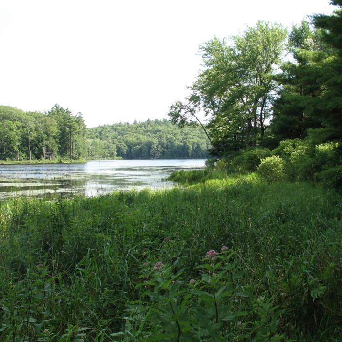 Heald Pond (King Brook Reservoir) is actually a flood control reservoir constructed in the mid-twentieth century as part of a regional effort to reduce flooding in the Souhegan River watershed including the town of Milford. This beautiful, quiet pond is nearly entirely encompassed by the Heald Tract of the Forest Society. Fishing is welcome, and expect to find warm-water species. One important caveat: No boats are allowed on Heald Pond – it’s shore fishing only. This property offers more than 1,000 acres, about five miles of trails and another pond – Castor Pond -- to explore, so be sure to bring a picnic lunch!